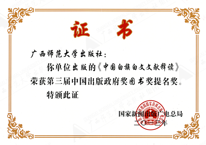 《中国白族白文文献释读》获第三届中国出版政府奖图书奖提名奖