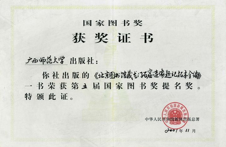 《北京图书馆藏龙门石窟造像题记拓本全编》获第五届国家图书奖提名奖