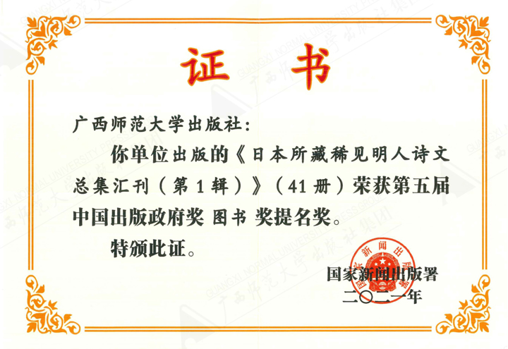 《日本所藏稀见明人诗文总集汇刊(第一辑)(41 册)》获第五届中国出版政府奖图书奖提名奖