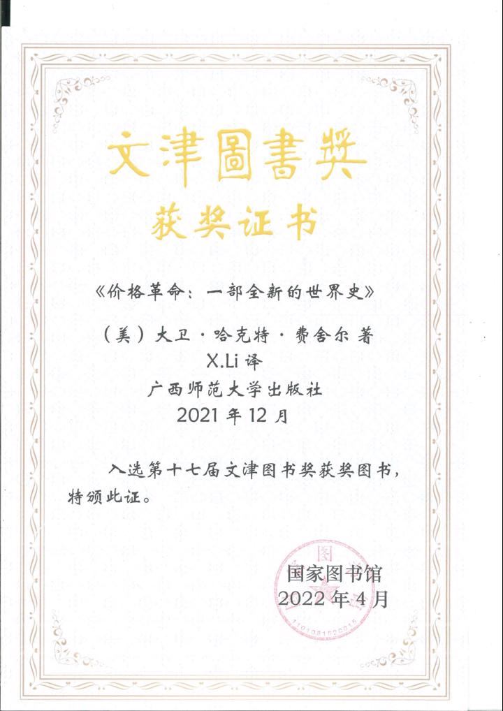 《价格革命:一部全新的世界史》获第十七届文津图书奖获奖图书