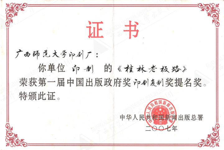 《桂林老板路(上、下)》获第一届中国出版政府奖印刷复制奖提名奖