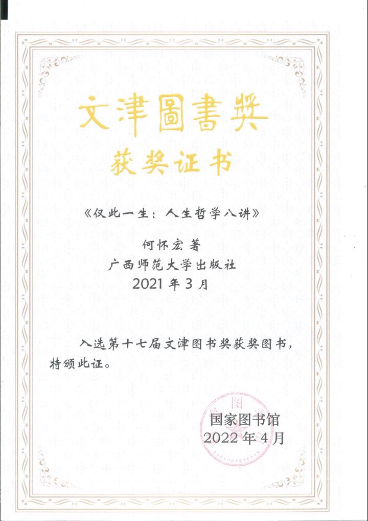 《仅此一生:人生哲学八讲》获第十七届文津图书奖获奖图书