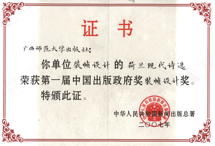 《荷兰现代诗选》获第一届中国出版政府奖装帧设计奖
