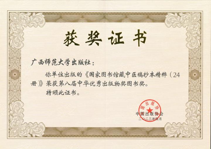 《国家图书馆藏中医稿抄本精粹(24册)》获第八届中华优秀出版物奖图书奖